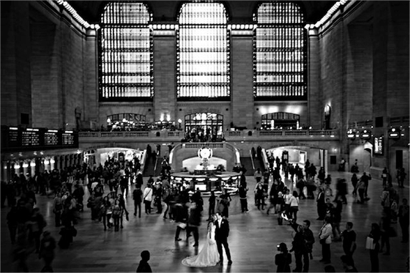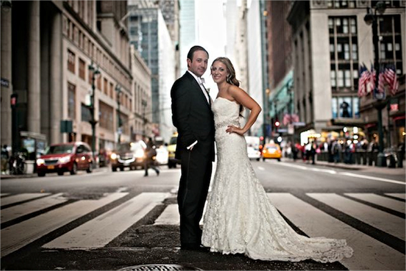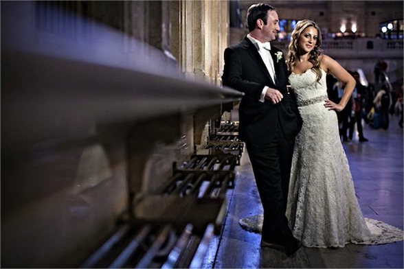 It was finally 2pm – time to get into my dress. Barbara arrived to my suite, while the second photographer went to Ron’s to document each of us getting ready. After those initial preparation shots, we went right into mine and Ron’s “first look” in the hotel, photos at Grand Central Terminal, as well as at the intersection of 42nd Street and Vanderbilt. We took amazing photos in the station by the ticket counters and outside on the street (even tourists were crowding around us and taking their own photos). We had a little time to rest in between photos and the wedding, but at around 8pm, we were ready to start the ceremony!