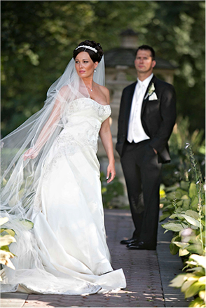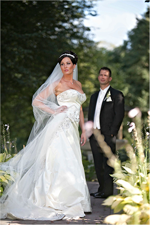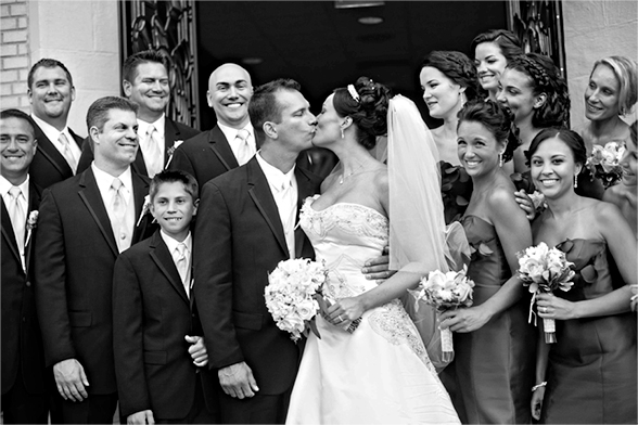 Laura & Frank were married on July 27th, 2012 at Cure of Ars Church and then celebrated at the Woodlands with Floral décor by Perfect Rose. Laura cascaded down the aisle in a Platinum for Priscilla of Boston gown. The couple was overjoyed having their Gatsby inspired affair!